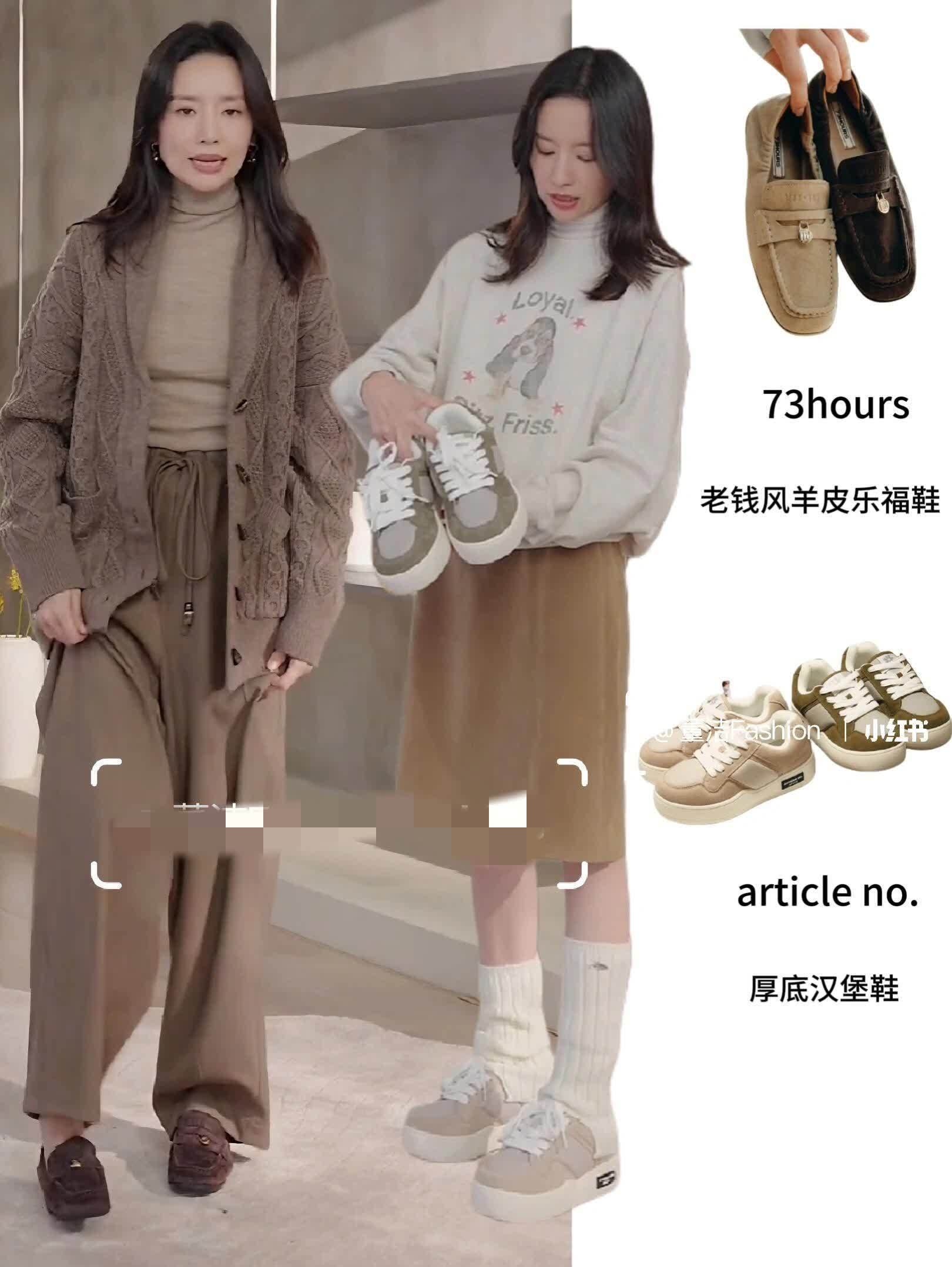 廓形毛衣/开衫:无论是作为内搭还是外套,一件有质感、廓形佳的毛衣是她穿搭的核心。提花、麻花、V领等不同款式为搭配提供了丰富的可能性。