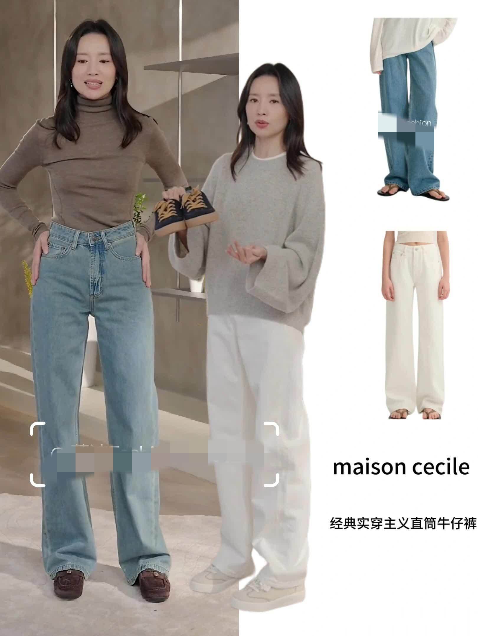 牛仔裤:直筒、微喇、阔腿等不同版型的牛仔裤是她打造松弛感的法宝,几乎可以搭配所有上衣。