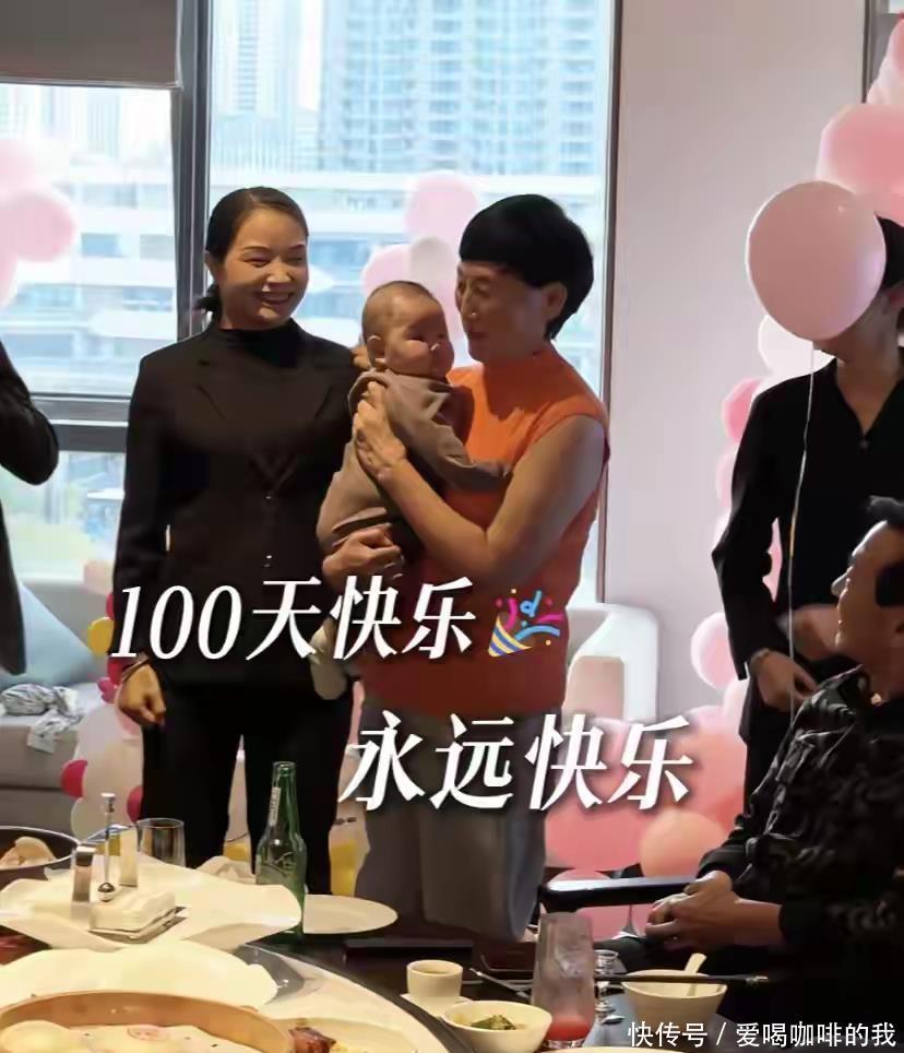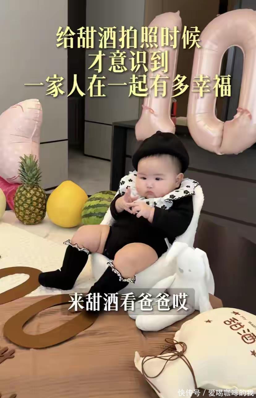 家人的重心,当然全绕着小公主“甜酒”转。为庆祝宝宝百天,一家人精心准备了小型宴会。酒店里用粉色气球和电子屏布置,虽不铺张却仪式感满满。